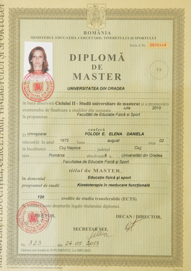A efectuat practica la Spitalul Clinic de Recuperare din Cluj Napoca.