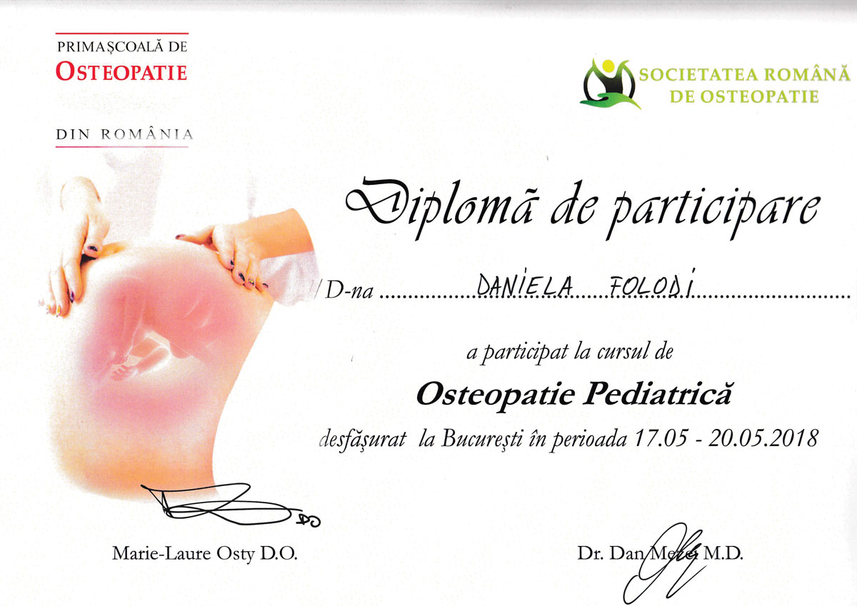 Curs de specializare tinut la Bologna de profesori renumiti din Italia cu tema "Osteopatia aplicata in sarcina gemelara si nasterea prin cezariana"